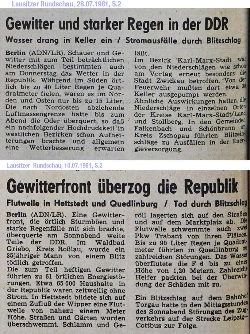 30.07.1981 Cottbus: Jahrhunderthochwasser, Märkischer Bote vom 06.08.2009