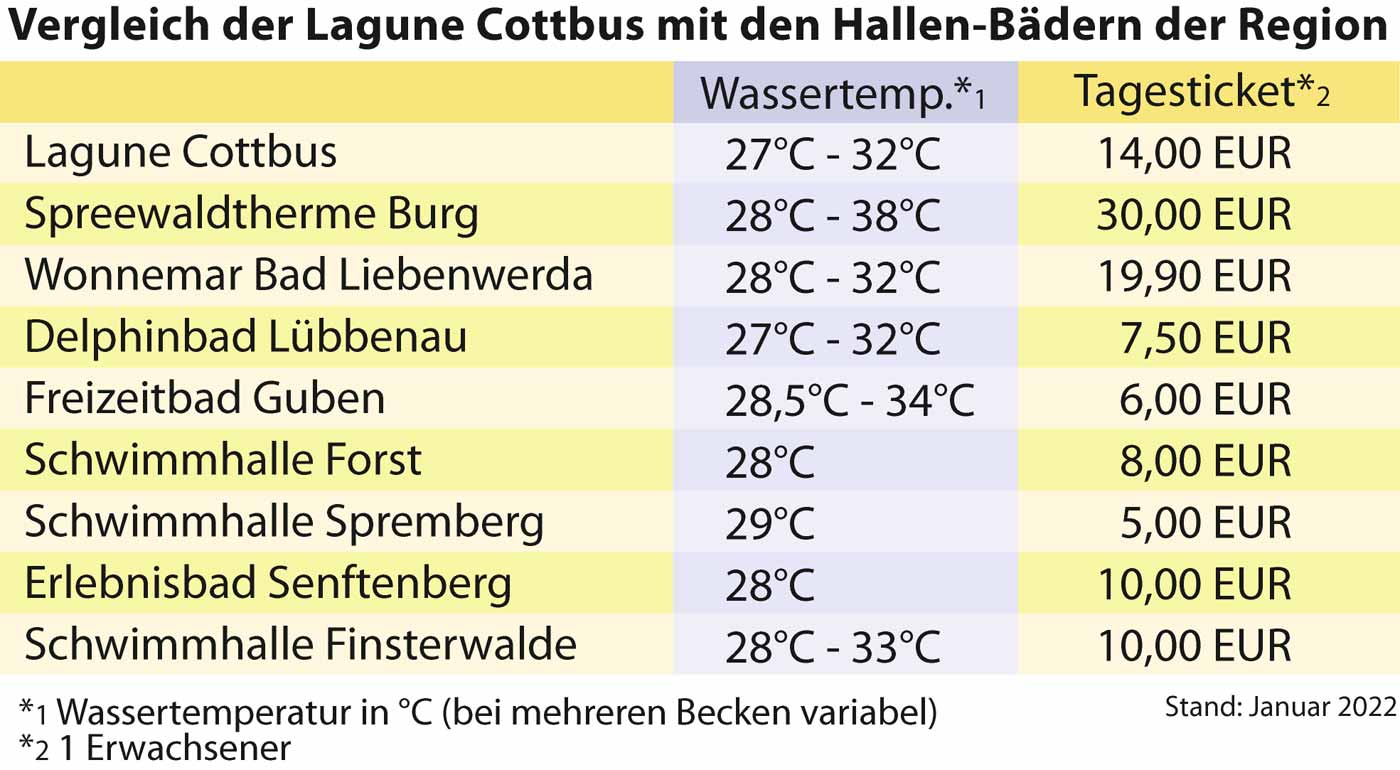 Baden wird in Cottbus teurer Die Lagune hebt die Eintrittspreise an und verkündet einen Besucherrekord. / LR-online, 13.04.2018