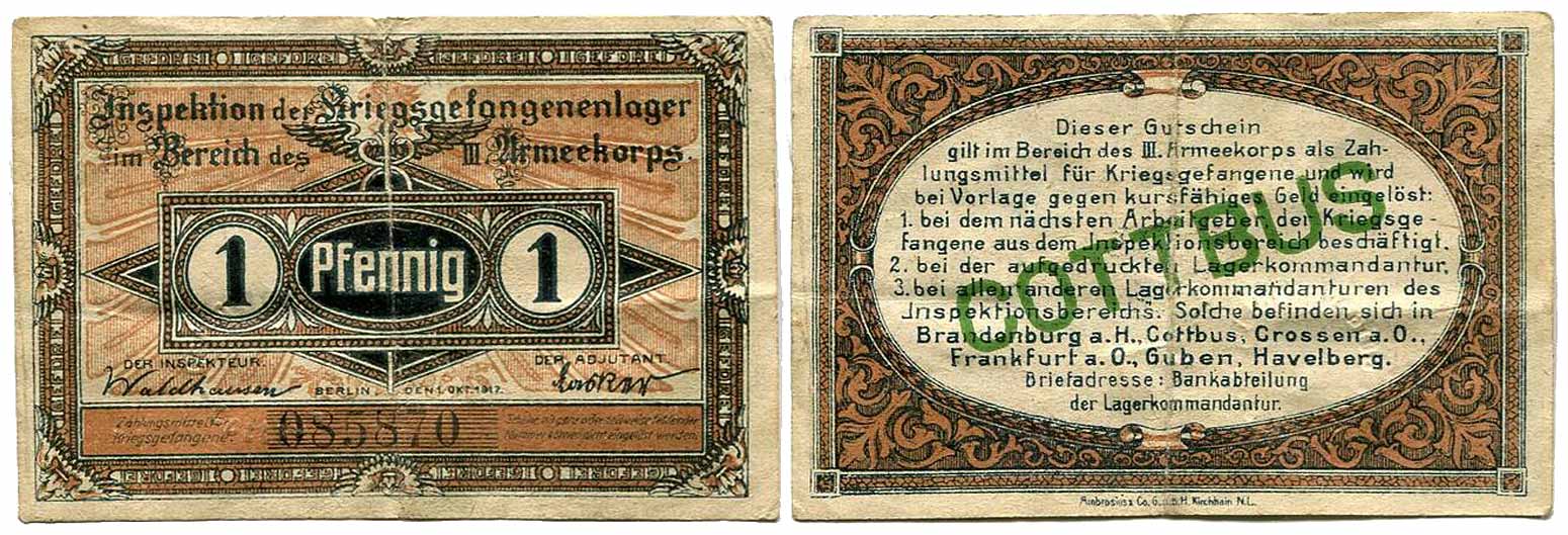 Der erste Weltkrieg tobte in Europa und kostete dem Kaiserreich nicht nur Unsummen von Geld. Als relativ rohstoffarmes Land fehlte es auch an Metallen aller Art. Die Deutschen waren aufgerufen, unter der Kampange "Gold gab ich für Eisen", persönliche Goldmünzen zu spenden sowie diverse Alltagsgegenstände aus Buntmetall, wie Pfannen, Bierkrüge aus Metall u.a. der Kriegswirtschaft zu Verfügung zu stellen. Selbst Kirchenglocken und Kupfer- und Nickelmünzen wurden eingesammelt. So war schon bei Kriegsbeginn Kleingeldmünzen Mangelware. Die letzten Münzen wurden in den Städten gehortet, um Zahlungsverpflichtungen bediehnen zu können. Um die lokale Wirtschaft irgendwie am Laufen zu halten, gaben Orte hastig selbstbedruckte Scheine aus. Dieses Kriegsnotgeld war dann für eine bestimmte Zeit in der jeweiligen Gemeinde und ihrer Umgebung gültig