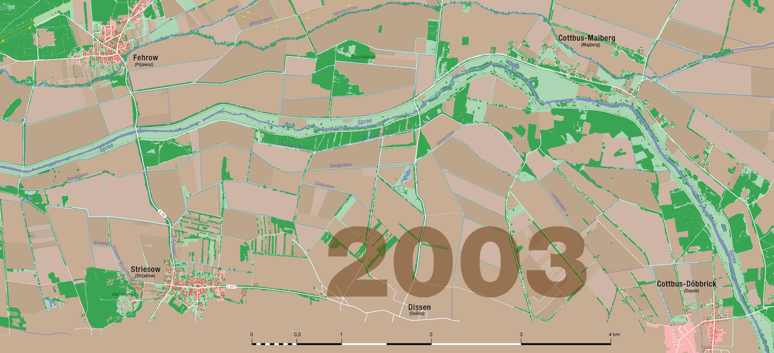 In den letzten drei Jahrhunderten veränderte sich das Aussehen der Spree grundlegend. Früher war sie ein unbändiges Gewässer in einer feuchten Landschaft. Unzählige Seitenarme, die sich zudem häufig in ihrem Aussehen veränderten, nahmen riesige Flächen in Anspruch und wirkten als Puffer bei den häufigen Hochwassern. In den umliegenden Dörfern und den Städten Peitz und Cottbus erhöhten sich erst langsam dann, mitder industriellen Entwicklung, merklich die Einwohnerzahlen. Der Druck auf die ungenutzten natürlichen Mäander der Spree stetig. Nach dem Vorbild der Urbarmachung des Oderbruch wurden nach und nach Feuchtgebiete durch Meloration und Eindeichung trocken gelegt und landwirtschaftlich erschlossen. Um 1900 waren die Nebenarme der Spree weitgehend verschwunden, der Fluss fast komplett eng eingedeicht.