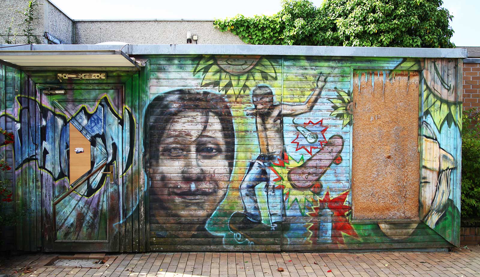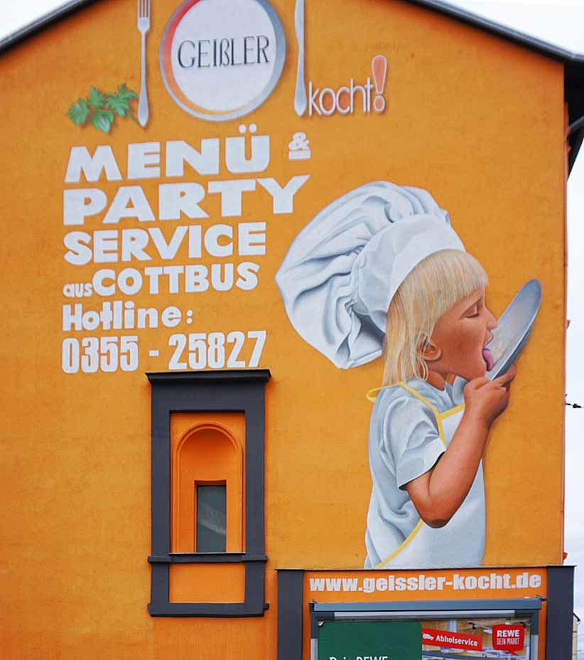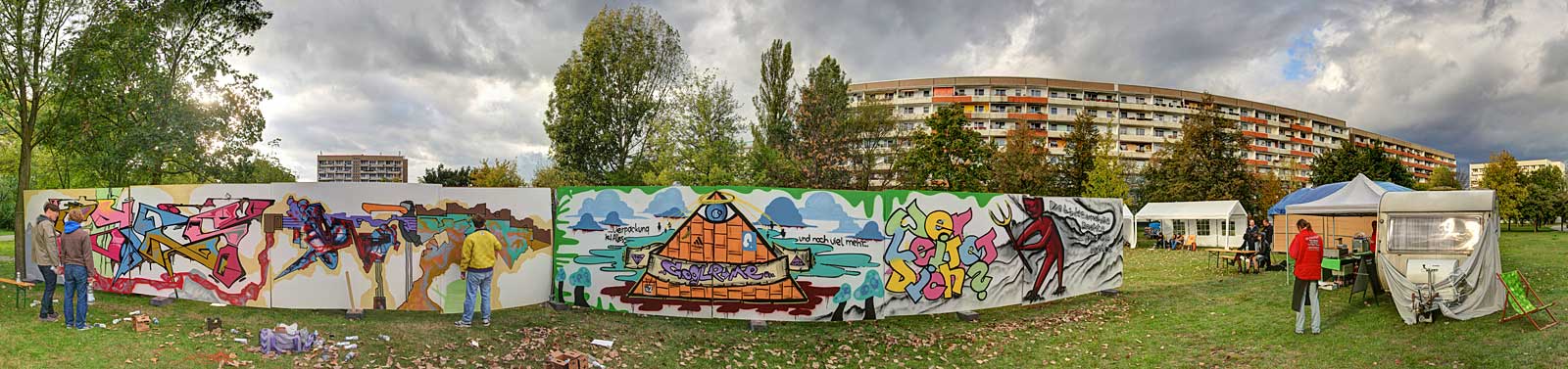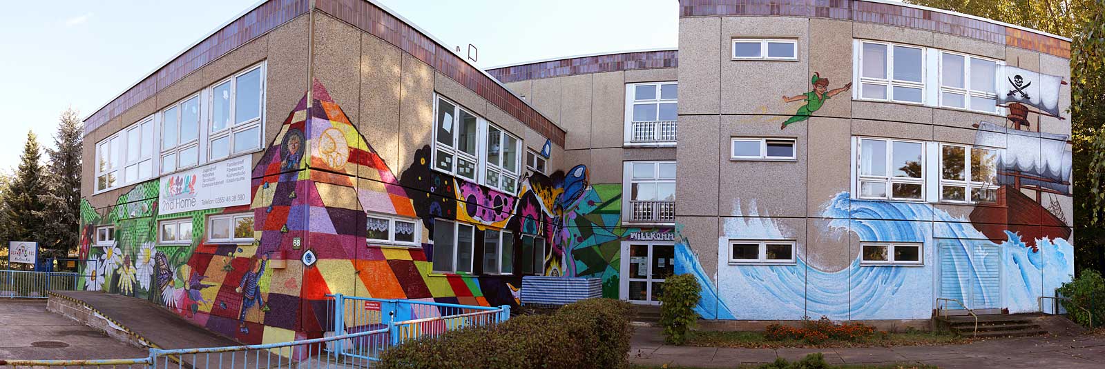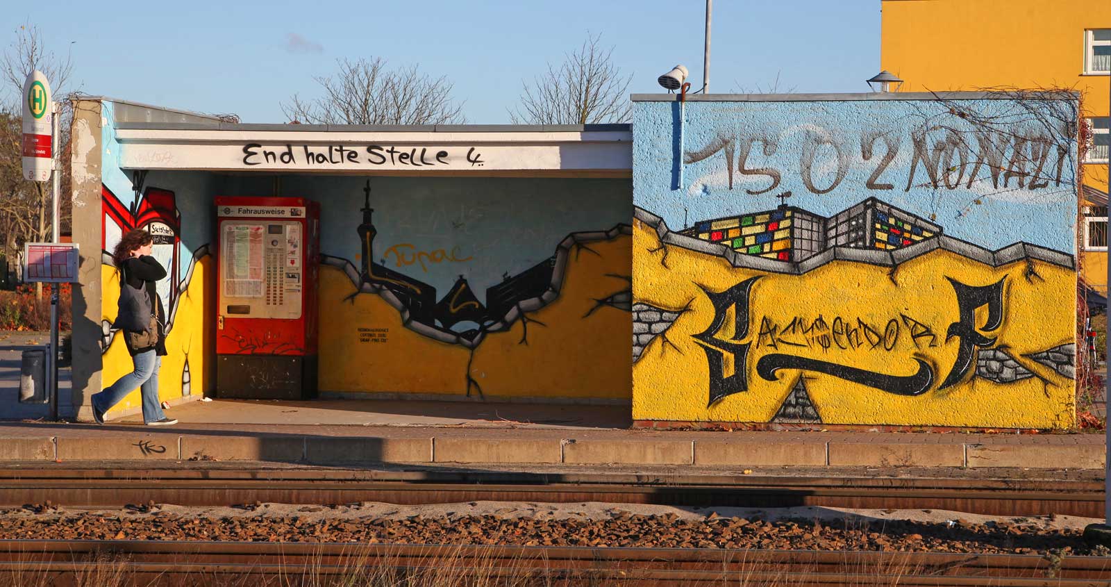 Sie ist einfach da, manchmal unbemerkt, oft temporär, machmal außergewöhlich und hin und wieder nah am Kitsch: Kunst im öffentlichen Raum. Sie ist ein Spiegel einer jeden gelebten Epoche der Gesellschaft und damit wertvoll und erhaltenswert. Grund genug, um ins Archiv zu gehen und diese Zusammenstellung zu zeigen. Es handelt sich hier nicht um eine vollständige und geordnete Auswahl an Wandbildern - vielmehr soll hier die Vielfalt der kreativen Arbeiten gezeigt werden - unabhängig vom Wert und der Einordnung für die Kulturgeschichte. Nicht bei allen Arbeiten konnten Urheber ermittelt und zusätzliche Informationen eingeholt werden. Sollte jemand sich und seine Arbeiten wiedererkennen, bin ich sehr dankbar, wenn sich dieser bei mir meldet. Die Kontaktdaten stehen im Impressum dieser Website.