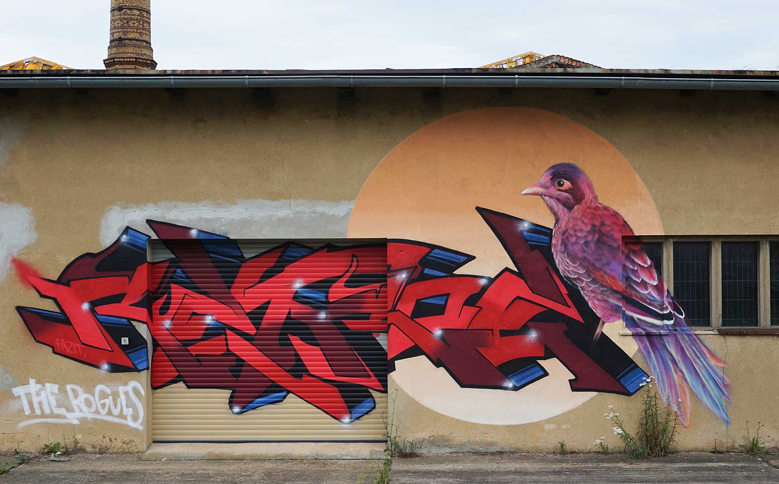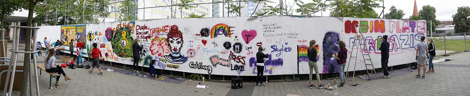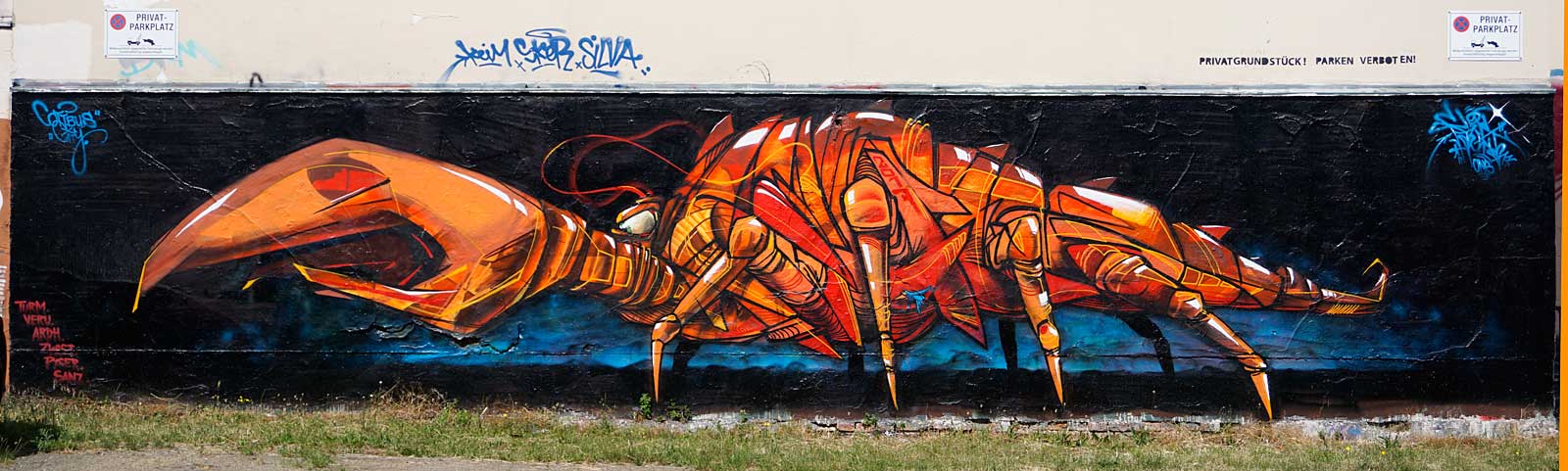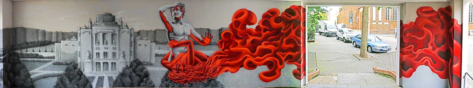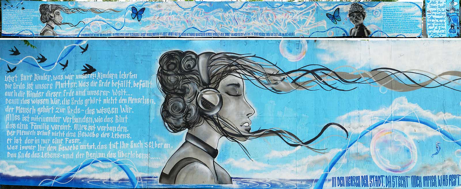 In etwa 30 Stunden Arbeitszeit schuf Martin Jainz (Kunst mit Herz CB), an einem Bauzaun am Blechen Carré diese aufwändige Graffiti-Arbeit aus dem Jahre 2019.