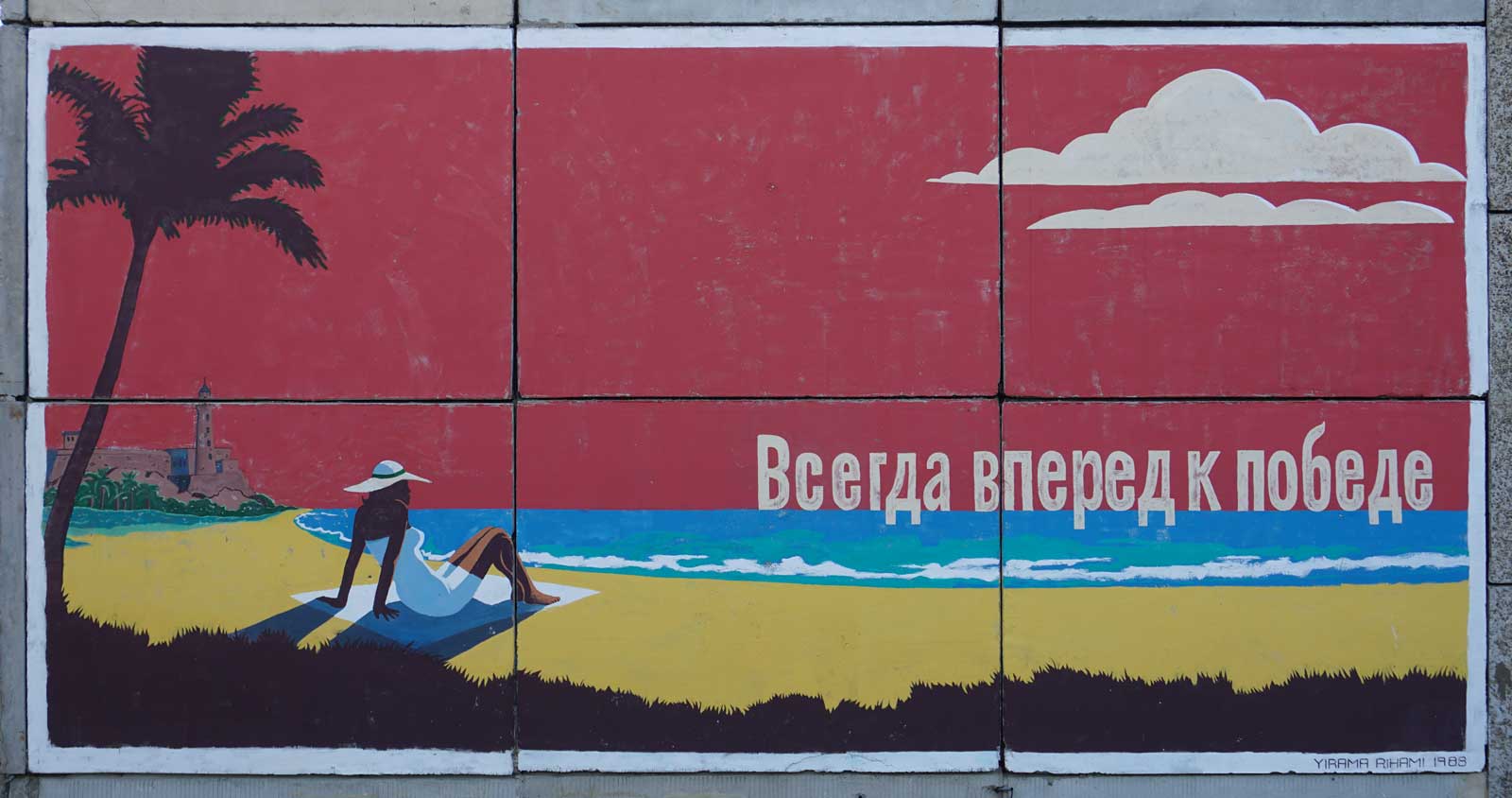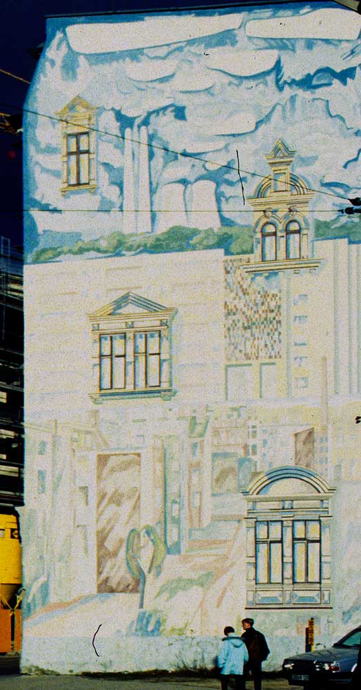 Bild-Nr. 00157_1999: Wandbild an einer ehemaligen Umformer-Station(wurde zwischenzeitlich als Kultugebäude genutzt) auf dem Gelände der BTU Cottbus-Senftenberg. Der Urheber ist unbekannt und das Werk verschwand mit der Neugestaltung der Konrad-Wachsmann-Allee durch Abriss des Gebäudes.