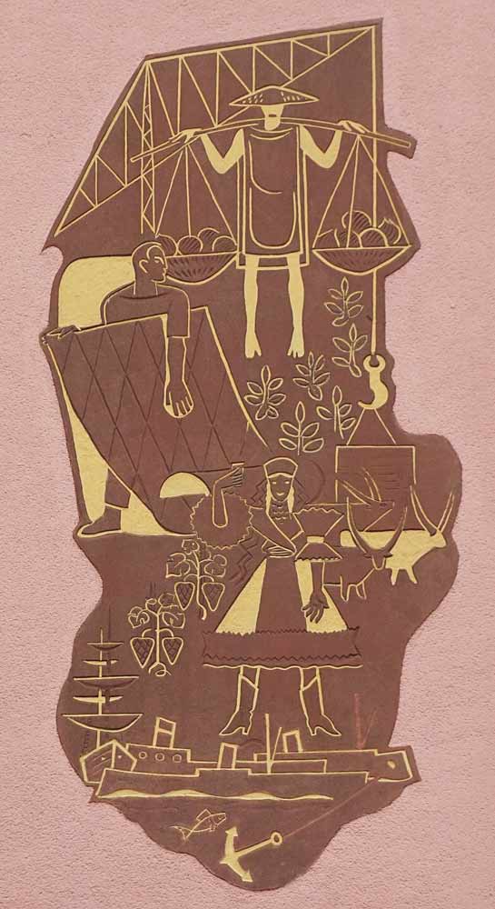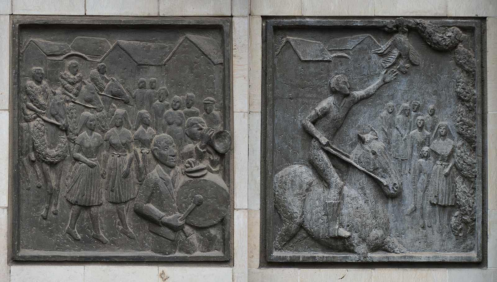 Rudolf Sitte und Dieter Graupner: Keramikwand an der ehemaligen Buchhandlung "Jenny Marx" (1975) - (zwischendurch Buchhandlung "Heron" heute Buchhandlung "Hugendubel")