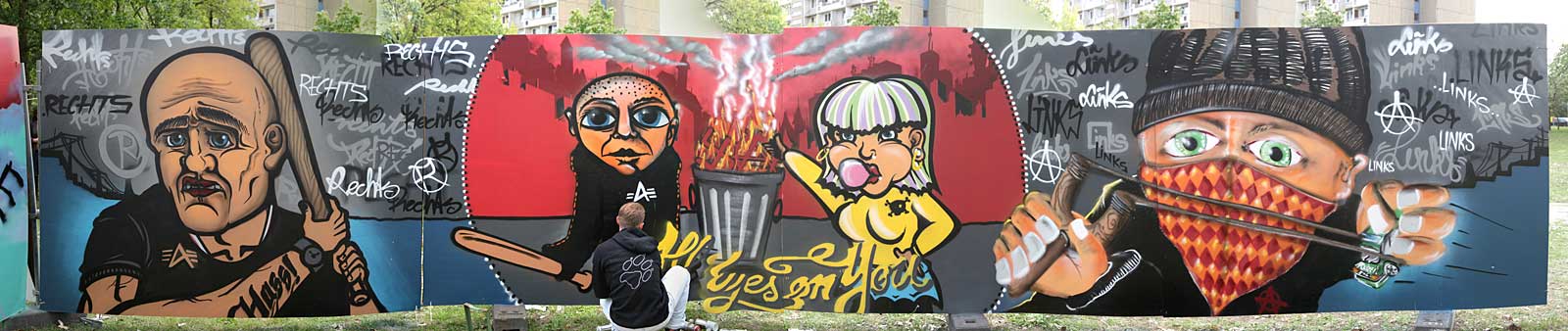 Beim Sammeln der gezeigten Beispiele ist ein deutlicher Trend auszumachen: Wandbilder werden immer kurzlebiger. Während viele traditionelle Arbeiten in der Stadtpromenade inzwischen über ein halbes Jahrhundert zu sehen sind, werden Bilder der jungen Graffiti-Szene meist nur temporär (weil oft an alten Abbruchhäusern oder Bauzäunen aufgetragen) gezeigt. Das ist ein wenig schade, zumal gerade letztere Szene sich in der Qualität deutlich gesteigert hat.