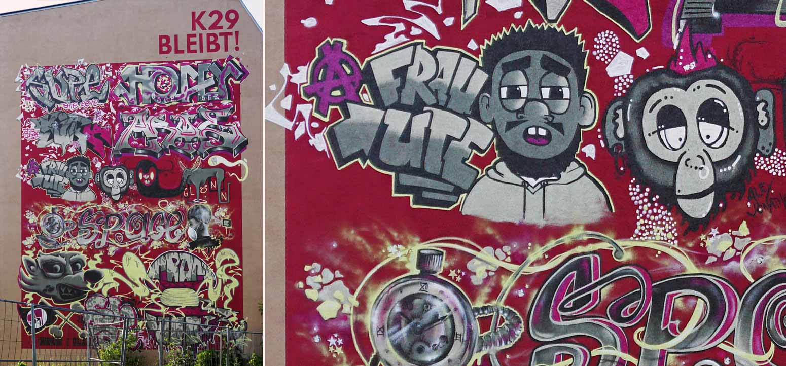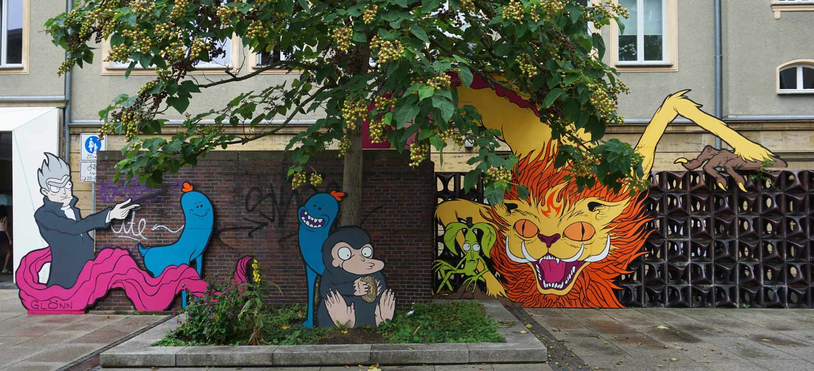 Beim Sammeln der gezeigten Beispiele ist ein deutlicher Trend auszumachen: Wandbilder werden immer kurzlebiger. Während viele traditionelle Arbeiten in der Stadtpromenade inzwischen über ein halbes Jahrhundert zu sehen sind, werden Bilder der jungen Graffiti-Szene meist nur temporär (weil oft an alten Abbruchhäusern oder Bauzäunen aufgetragen) gezeigt. Das ist ein wenig schade, zumal gerade letztere Szene sich in der Qualität deutlich gesteigert hat.