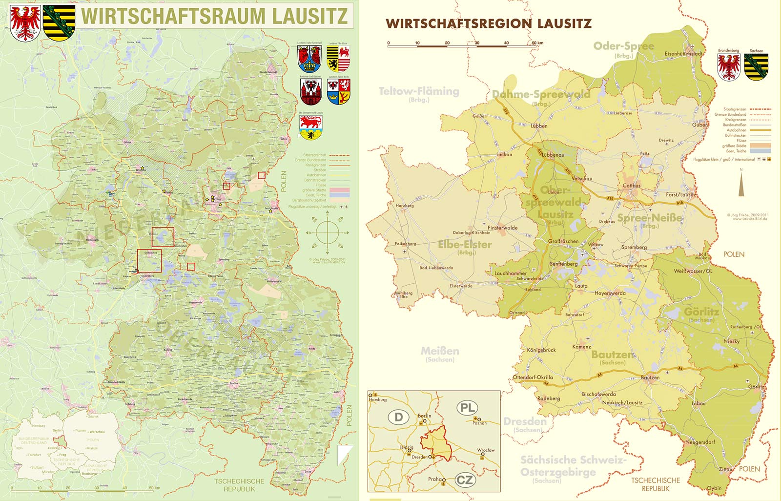 Im Jahre 2003 hat mich erstmals jemand gefragt, wie denn die Lausitz räumlich definiert ist. Ich hatte damals so gut wie kein Material gefunden, welches mir zuverlässig Angaben darüber machen konnte. Die Einen sagten, die Lausitz definiert sich über Ihre sorbisch-wendischen Siedlungs- und Sprachgebiete, andere bemühten sehr alte Karten (welch unsinnige Art angesichts der zersplitterten und ständig wechselnden Einflussgebiete der Fürstentümer und Reiche) und wieder andere zogen die Grenzen ganz willkürlich nach heutigen wirtschaftlichen Interessen. So habe ich bisher, je nach Auftraggeber, zwei Varianten einer Lausitz-Karte gezeichnet. Es werden nicht die letzten gewesen sein, denn die bestellten Karten zeigen ja nur die deutschprachige Lausitz und berücksichtigen noch nicht die Gebiete jenseits von Oder und Neiße. So bleibt die Suche nach den äußeren Grenzen der Lausitz weiter unscharf - ein Unding in den ansonsten durchbürokratiserten Ballungsraum Europa. Wer also Ideen oder besser über Wissen zur Thematik verfügt kann sich gerne bei mir melden. Ich bin dankbar für jede Information und hoffe irgendwann mal die unltimative Lausitz-Karte zeichnen zu dürfen.